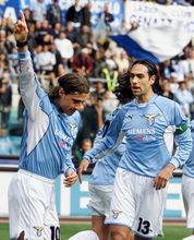 克雷斯波和內斯塔在比賽中2000年,克雷斯波以創紀錄的3550萬英鎊身價從帕爾馬加盟拉齊奧(拉齊奧支付了1600萬現金外加馬蒂亞斯·阿爾梅達和塞爾吉奧·孔塞桑)。2000-01的意甲克雷斯波個人以26球榮膺意甲金靴獎,同時在阿根廷國家隊中也是意氣風發,全年俱樂部比賽打入28球(其中聯賽26球,歐冠2球 )。 2002年8月,拉齊奧為緩解俱樂部巨大的財務危機,不得已將克雷斯波和內斯塔分別出售到國際米蘭和AC米蘭。