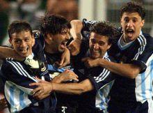 98世界盃和隊友一起慶祝克雷斯波在他出場的64場比賽中打進35球,排名阿根廷歷史總射手榜第二(第一是巴蒂斯圖塔,56球;馬拉多納,34球,排名第三。)