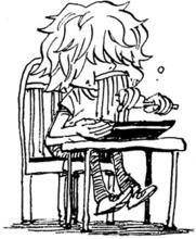 童年時代的基拉於單行本SBS專欄登場,當時的他留著覆蓋眼睛的雜亂金髮,沒有配戴面具,而且喜歡大口吃著面類 。