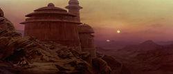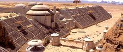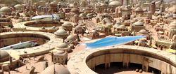 莫斯埃斯帕莫斯埃斯帕是塔圖因少數港口城市之一,興起於沙漠,多年來一點點建成。圓頂房屋保護居民免受雙子烈日和酷熱高溫的傷害。莫斯埃斯帕的大多數居民都是勉強維持生計的移民和貧民,共和國時期,雖然其它地方已宣布奴隸制非法,但莫斯埃斯帕仍然保留著這種卑鄙的制度。在許多五花八門的民居、工作區和商場中也有娛樂場所,有的甚至非常巨大。著名的莫斯埃斯帕大競技場幾乎可以容納全市人口作為觀眾。