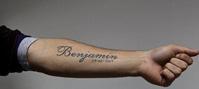 阿奎羅左臂紋身阿奎羅的右臂與左臂分別印有不同的紋身,在右臂內側印有拉丁字母寫成的“Kun Aguero”的紋身,而在其左臂則是印有他“兒子名字與出生日期”的紋身。