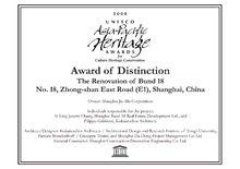 在2006年,有來自亞太11個國家和地區的36個項目提出申請文化遺產保護獎,其中中國地區有8個項目申報,而外灘十八號是中國內地唯一的得獎項目。