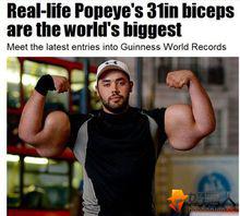 真人版據外媒報導,這位來自埃及亞歷山大來的24歲穆斯塔法·伊斯梅爾可謂現實版的“大力水手”。在過去10年中,他每天進行兩次舉重訓練,並通過注射西斯龍,終於讓自己的上臂圍達到了79厘米,成為世界之最。如今,他的上臂圍相當於一個成年男子的腰圍。不過,現實中這位“大力水手”並不喜歡吃菠菜。