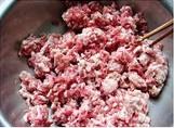 大白菜水餃4、將豬肉沿著同一個方向攪拌上勁,肉餡出筋後可適當分3-4次加入清水,每次加水都要充分拌勻,使肉餡充分吸收水分。