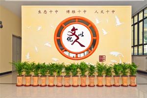 校園文化建設則逐漸以“內修”變為“外展”:2007年,教學樓走廊醒目位置懸掛辦學目標:“人際關係和諧、學術氛圍濃厚、文化品位高雅、個性發展自自由”,校訓“尚學、善思、有守、追遠”。2010年,在小會議室懸掛學校校訓:博學 仁愛 責任 強者。2011年,在教學樓一樓至二樓走廊中間位置,鐫刻《論語》精要,引領學生進學;2011年,在學校柿園中,添置兩塊太湖石。