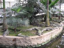 灣鱷兩棲動物綜合館位動物園南端,總投資近600萬元,總建築面積3027.33平方米。它的整體建築外形上突出動感,整體館舍以歐洲風格為主。兩棲館以鱷魚和其他兩棲、爬行動物的飼養與展示為主,館內點綴以熱帶雨林植物。館折功能齊全,適應多種不同習性的兩棲、爬行動物生存,給人的感覺是古樸又富現代風格。館內中心部位是大型灣鱷池,池內放養近百條巨大的、珍貴的灣鱷,池中有棧道,可供遊人入池觀賞、投餵灣鱷。在灣鱷池周圍設有就個展館,分別為揚子鱷、巨蜥、大鯢、龜類、蛇類、熱帶海洋魚種和亞熱帶雨林植物。期間飼養和展出既可爬行,能在水中生活的兩棲動物近30種近300餘條。熱帶雨林植物觀中的多種珍稀植物,為全館增添濃郁的南國風情,與生活在熱帶、亞熱帶的兩棲動物相映生輝。全自動的溫度調節系統保證館內四季如夏。四周的走廊及平台為遊人提供休息場地。