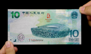 奧運紀念鈔2008年7月8日,中國人民銀行發行了第29屆奧林匹克運動會紀念鈔。紀念鈔面值10元,與現行流通人民幣具有相同職能,與同面額人民幣等值流通。