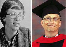 比爾·蓋茨(左:15年前/右:4年前)1996年6月,蓋茨第二次成為《連線》雜誌封面人物。畫面是蓋茨裹著浴袍,只是該畫面已被Photoshop軟體處理過。