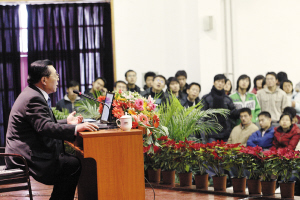 歐陽自遠:我認為在所有的工作中,能夠得到各方的“理解”是最關鍵的部分。在理解和支持的前提下,我們的工作就一定能取得成功。“理工大學”“賢進京三請院士”2004年4月,天津理工學院升級為大學,計畫加大引進高科技人才力度,準備請權威的院士科學家來校帶動科研教育發展。考慮到歐陽自遠院士負責的探月套用科學涉及材料、自動化控制等綜合學科,因此該校決定請歐陽自遠院士為該校名譽校長。當該校黨委書記雷克儉找到歐陽自遠院士,歐陽自遠院士表示,願意為理工大學做貢獻。得到這個訊息,學校領導班子十分興奮。為了請歐陽院士,也表達該校的一片誠意,該校派出趙輝教授,先後兩次進京專程拜訪歐陽院士。理工大學人的誠意打動了歐陽院士,最終他欣然同意出任該校名譽校長。2005年10月15日,理工大學為歐陽自遠院士準備了隆重的聘請儀式。當天,歐陽自遠院士就給師生們作了探月工程的報告,受到師生歡迎。同時,理工大學科研部門通過自己的科研成果和人才隊伍的成長也進入到繞月探測科學套用委員會,成為參與探月工程的一家天津科研單位。昨天下午三點,天津理工大學薈賢堂座無虛席。中國探月工程——“嫦娥工程”首席科學家、中國科學院院士、天津理工大學名譽校長歐陽自遠,應理工大學邀請,專程作了題為《月球探測的形勢和中國的“嫦娥工程”》的報告。在兩個多小時的時間裡,歐陽自遠用清晰幽默的話語為將近1500名學生進行了一場豐富多彩的科普講座。歐陽自遠院士就月球基本性質,在人類探索太空過程中的特殊意義,在軍事能源等多方向的發展前景,當前世界太空科技發展形勢和近年來世界各國探月登月競爭局勢等諸多方面向1500名大學生做了精彩而幽默的演講,現場高潮迭起,贏得了學生們的笑聲和長時間熱烈的掌聲。“小隕石撞擊地球,將對地球造成非常大的危害,但白堊紀的恐龍不是被隕石砸死的!”歐陽自遠微笑著解釋說,當小行星的一塊直徑一公里的隕石在6-7億公里外,撞向地球表面,會對地球造成比印度洋海嘯還要大幾百倍的災難,強大的衝擊波會使地面表面升溫,一切能燃燒的可燃物都會劇烈燃燒,而因此引起森林火災,地球昏暗和酸雨會引起植物和動物的大量死亡,而據研究統計,導致恐龍的滅絕的那次撞擊事件,並不是歷史上最大的一次隕石撞擊地球的事件。至今,為了探索人類空間的奧秘,獲取新的資源,宇宙空間有795枚人造衛星,載人航天也有970人次,在2006年底之前,共有451名太空人進入了太空,人類也帶著無限好奇希望在其他星球上找到自己的同類,或是其他種類的生命活動。“目前,還沒有一位科學家發現過有外星人存在的可靠證據!”針對同學們對於外星人傳說的好奇,歐陽自遠這樣回答。“我聽說今年中國要再發射一顆‘嫦娥二號’衛星,用‘嫦娥二號’來撞擊月球表面,並由‘嫦娥一號’來拍攝全過程,並邀請日本的衛星一起來觀看!”此時,這位同學忽然說出一個自己從網路上看到的小道訊息,話音剛落,四周就響起了陣陣的笑聲。“這個事情我沒聽說,謝謝你告訴我。”歐陽自遠的回答,得到了滿堂的笑聲和掌聲。報告會後,歐陽自遠將“嫦娥一號”拍攝的首幅月球照片和一套由他主編的《嫦娥書系》作為新年禮物送給理工大學的師生們。“當我們的視線,隨著相機的移動,看到一幅幅圖像拉伸出來,心情異常激動,因為它是中國人依靠自己的力量獲得月球的數據。”歐陽自遠感慨地說。