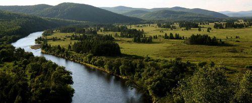 | 松花江有兩個源頭,西源嫩江發源於大興安嶺伊勒呼里山,南源第二松花江(簡稱二松)發源於長白山天池,兩江在三岔河匯合後稱松花江,東流至同江注入黑龍江。 |