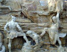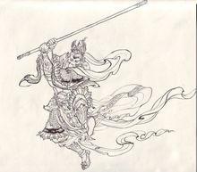 法天象地:長的高萬丈,頭如泰山,腰如峻岭,眼如閃電,口似血盆,牙如劍戟;手中那棒,上抵三十三天,下至十八層地獄。