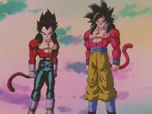 | 超級賽亞人四 《龍珠GT》設定。 不能通過超三直接進階,需要變成黃金大猿恢復理智後才能變身而成需要尾巴。和其他超級賽亞人不同,頭髮是黑色,頭髮會披肩長度且從頸部披到身前,身上覆蓋紅色體毛包括尾巴,黃色眼瞳紅色眼角,周圍無閃電。 相關進階: 1.全能量:悟空吸收了悟飯三人變身成超級賽亞人的能量後,達到了這個全能量的狀態。 2.超越:面對強敵一星龍,悟空打算吸收悟飯等人的全部氣來提升力量超越了極限。 | 孫悟空[動漫《龍珠》故事初期的主人公] |