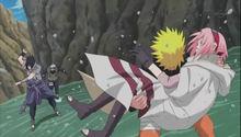 在得到上級任務的鹿丸,把佐助帶回。由於上次大蛇丸襲擊,上忍要保護村子,所以才加營救佐助僅有鹿丸、鳴人、寧次、牙、丁次。櫻哭著請求鳴人一定要把佐助帶回來。鳴人也答應櫻,會盡其一生來實踐諾言。