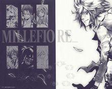 白蘭、尤尼與假六吊花義大利語意為千花。密魯菲奧雷家族是由白蘭率領的新銳崛起的傑索家族和尤尼率領的跟彭格列家族有同等歷史的基里奧內羅家族合併而成。傑索家族的人為白魔咒,穿白制服;基里奧內羅家族的人為黑魔咒,穿黑制服。白魔咒拿手的是縝密狡猾的戰術;黑魔咒則有許多熟悉實戰的猛將。密魯菲奧雷共有17隊,各部隊以花的名稱命名,胸針是與之對應的花。A級以上的隊長有6名,稱之為六吊花,持有瑪雷指環。後出現了真·六吊花,並證實了之前的六枚瑪雷指環為假的,而真瑪雷指環與彭格列指環一樣,都屬於超A級指環。