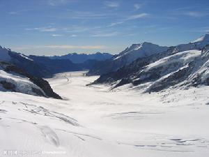 少女峰—阿萊奇冰川—比奇峰阿萊奇峰地區擁有歐洲最長的冰川,長達二十三公里。這個巨大的冰川由積雪、冰塊和岩石組成,總重量將近三百億噸。阿萊奇冰川物種豐富,不僅有昆蟲還有動物。這裡的野花也不畏嚴寒,競相開放。