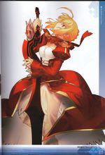 服裝 身穿紅色禮裝,手持形狀奇異的長劍,職階為Saber的少 女Servant。外形與《Fate/stay night》中登場的Saber(阿爾托莉雅·潘德拉貢)相似:金髮,綠瞳,呆毛,loli體型(胸圍卻不同),然而實則為身份不同的另一人。作為主角可選的Servant之一,是萬能型的新手向英靈。設定為身穿男裝,裙子的前擺設計為露出內衣的半透明,上身的裝束也比Saber來得更為大膽。
