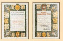 1924年8月4日羅馬尼亞政府一級勳章,有證書和金獎章。