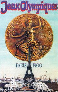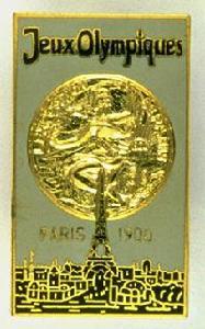 獎牌1900年巴黎奧運會獎牌正面為張著雙翅的勝利女神雙臂上舉,雙手托著月桂花冠。背景圖案為巴黎景色和世界博覽會紀念物。