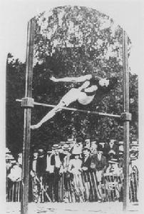 1900年5-10月巴黎奧運會在世界博覽會(簡稱世博會)期間進行。由於法國主辦人員熱衷於博覽會,致使這屆奧運會不僅時間長而且場地分散、設備極差,組委會借用了位於巴黎市郊布洛尼的原法國賽馬俱樂部的跑馬場作為主體育場,周長500米,觀眾席只有500個座位。田徑比賽使用的是坑坑窪窪的草地跑道;跳遠比賽在賽馬場的草坪上進行,沙坑是運動員自己動手挖的;跨欄的欄架是臨時用樹枝拼搭而成的;標槍、鐵餅等投擲項目也在草坪上舉行,同時本屆奧運會沒有舉行開幕式。