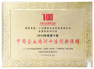 中國企業培訓十佳著作權課程 2014年月《企業管理技能訓練系統》著作權課程,針對管理層的全面技能訓練,對應企業塑造軟性競爭力的需要,擁有系統化實用性的管理邏輯,內容涵蓋了管理者定位的深刻理解、團隊的高績效組建、團隊文化的打造和執行力的形成,以及團隊發展過程中階段性問題的管理和風險預警,用分組演練,分析問題,梳理思路,方法探討,案例點評,遊戲互動,沙龍分享等模型實現管理者全面技能套用和管理理念沉澱。