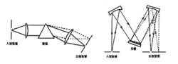 圖1 色散型成像光譜儀 主要地位。色散型成像光譜儀使用色散稜鏡或光柵等色散元件將複色光色散分成序列譜線,然後再通過探測器測量每一譜線元的譜線強度,見圖1。這種成像光譜儀雖然結構簡單,成像直觀,但它具有明顯的局限性,即它們的光譜解析度容易受到狹縫寬度的限制。色散型成像光譜儀的光譜解析度很難做到5nm以下,如想獲得更高的光譜解析度,則會使光通量顯著降低,信噪比也會降得比較低。