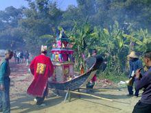 平雲山冼夫人信俗光緒高州府志。卷六輿地六風俗: “二月祭社,分肉入社,後田功畢作,自十二月至於是月,民間多建平安醮,設蔗酒於門,巫者擁神疾趨,以次禱祀,擲珓懸朱符而去。神號康王,不知所出。鄉人儺,沿門逐鬼,唱土歌,謂之年例。或官紳禮服迎神,選壯者赤幟,朱藍其面,衣偏裘之衣,執戈揚盾,索厲鬼而大驅之,於古禮為近。參嶺南雜記、道光志、電白志。”