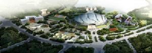 位於運動中心東南角的極限運動綜合樓,主要功能是為極限運動愛好者和學員提供教學、訓練、交流設施。建筑北面利用建築圍合成一個攀岩廣場,建築實牆直接作為攀岩壁。攀岩廣場以北為極限運動公園。建築的形象取材於極限攀岩運動的岩石和山峰的形象,利用斜向的裂縫分格和大實大虛的建築形體營造出岩石和山體的塊面感和雕塑感。挺拔的個性化的牆面寓意著極限運動“追求自我、挑戰自我”的運動理念。V型柱、自由斜柱則來源於森林樹木的構思,表達了運動員返璞歸真、回歸自然的願望。