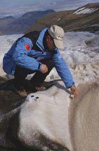 張文敬在取雪藻行進了1個多小時,臨近雪線,正是“腳力盡時”,前方忽然出現一條冰面河流,把冰川沖成了一道大大的裂縫,時而在冰面上奔騰,時而又在暗縫中咆哮。這冰上奇景吸引著我們,正當記者貼近冰河拍攝時,張教授指著記者腳下隆起的一處冰說,這可能是雪藻。只見晶瑩的冰粒上附著粉紅色的顆粒,點點滴滴,象誰不經意塗抹上的顏色。我們順著粉紅色的顆粒細細搜尋,發現在冰河朝陽的峭岸上布滿了帶狀的粉紅色的顆粒。張文敬教授用GPS定位儀測得,這裡是北緯78.10度,高度為41英尺,時間是7月31日中午12點。這個發現出乎張教授意料之外,他沒有帶採樣的容器,記者找出4個膠捲盒,張文敬用冰粒洗淨,採樣4瓶。在北極冰川積累區發現雪藻,說明這裡有低級生命存在。在其他類似的冰川環境下,很難發現這種生命現象存在分布。這次北極雪藻的發現,豐富了冰凍川里生物多樣性的內容。張文敬說:“研究北極雪藻的生存條件,它是怎樣繁衍的,對於研究冰雪王國里生命的產生、延續和演化,對於研究生物多樣性,具有重要的科研價值。”張文敬是中科院成都山地災害與環境研究所研究員,現年55歲,1970年畢業於蘭州大學,學的是冰川專業。32年來與冰川結伴,有濃濃的“冰川情結”,這次到北極的第一天就爬上冰川,以後每天都要爬一次冰川,涉冰水河、翻碎石山,以苦為樂。這次,他還把女兒張怡華也帶來了,本來張怡華要去美國讀研究生的。有時,張文敬獨自上冰川,早出而暮未歸,她女兒便到冰川底下迎他。記者問張怡華:你是不是為有這樣的爸爸而自豪?她說:“當然。”(人民網斯瓦爾巴德群島郎伊爾賓8月1日電)