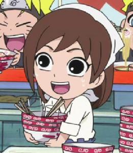 | 168話《渾身燃燒吧!攪拌 拉麵 煮麵》 鳴人和丁次都想嘗嘗很久沒吃到一樂拉麵沒想到一樂拉麵居然臨時休息但不死心丁次聞到一樂傳出拉麵味道於和鳴人一起查探真相沒想到們因此得知菖蒲被料理忍者擄走訊息於決定助手打一臂之力… 最大看點:最後變胖的一樂拉麵館的菖蒲姐姐。 | 第一部168話吃了太多料理忍者拉麵之後 |