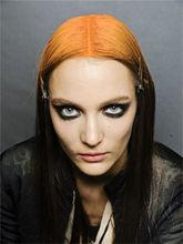 金髮碧眼的模特也將自己的金髮中融入了漂染的橘色,金色與橘色的對比,露出漂亮的額頭,這兩種顏