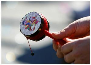 撥浪鼓縱觀撥浪鼓的古今,自先秦時期鞀鼓誕生直到今天,撥浪鼓這種樂器與玩具的形態居然沒有 什麼變化。歷代繪畫、圖案中的撥浪鼓,與今天的撥浪鼓大都大同小異。一種樂器與玩具經過了兩千多年的流傳,不改初創之型,真是難以置信。小小撥浪鼓,搖一搖,很輕鬆,聽一聽,很清脆,折射著深遠的城市文化和經濟文化內涵。