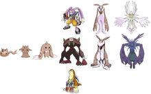 是守護數碼寶貝世界四個方位的四聖獸之一的青龍獸的屬下,跳躍能力非常強悍,擁有著由“數碼合金”構成的武器—〖寶斧〗。通過不同的進化路線,分為:玉兔獸(資料種)和玉兔獸(病毒種)