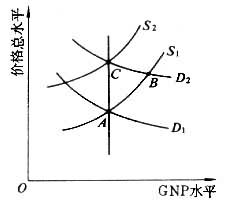 新古典主義的巨觀價格模型從該模型可以看出,總需求政策調整對產量的效應必須具備兩個特點:①如果需求調整政策沒有被預期到,總供給曲線就不會移動,需求政策對產量的效應就能保持住;②如果價格上升是緩慢的,供給曲線就會發生移動。但供給曲線從S 1移至S 2有一個過程,在這個過程中,需求政策對產量的效應雖然是遞減的,卻是始終存在的。因此,新古典主義認為,被人們預期到的政策變化是中性的,而只有被預期到的政策變化才對國民收入的增加有效應。