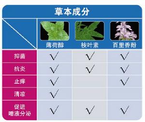 液體葡萄糖、蔗糖、水、葡萄糖、明膠、紅花黃提取濃縮液、96%乙醇、薄荷腦、桉葉素、亮藍、百里香粉、d-薴烯、異松油烯