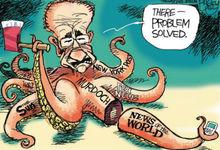 關於竊聽醜聞的漫畫美國法務部發言人翠西·席瑪勒(Tracy Schmaler)表示,法務部“將不會對調查發表任何評論。我們如果找到違法的證據,將會採取相應的行動。法務部已收到眾多國會議員的信件,要求對新聞集團進行調查,我們目前正在處理這些要求。”