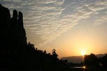 晚霞雙石柱景陽關:江北與花坪鄉交界處,下臨清江,自關口至江濱約7.5公里,曲曲折折,石級萬千,為歷代兵家重地,是縣境唯一的川蜀古道之一。雄關古道與神父教堂、溫泉水庫相互毗鄰,形成風景小區。
