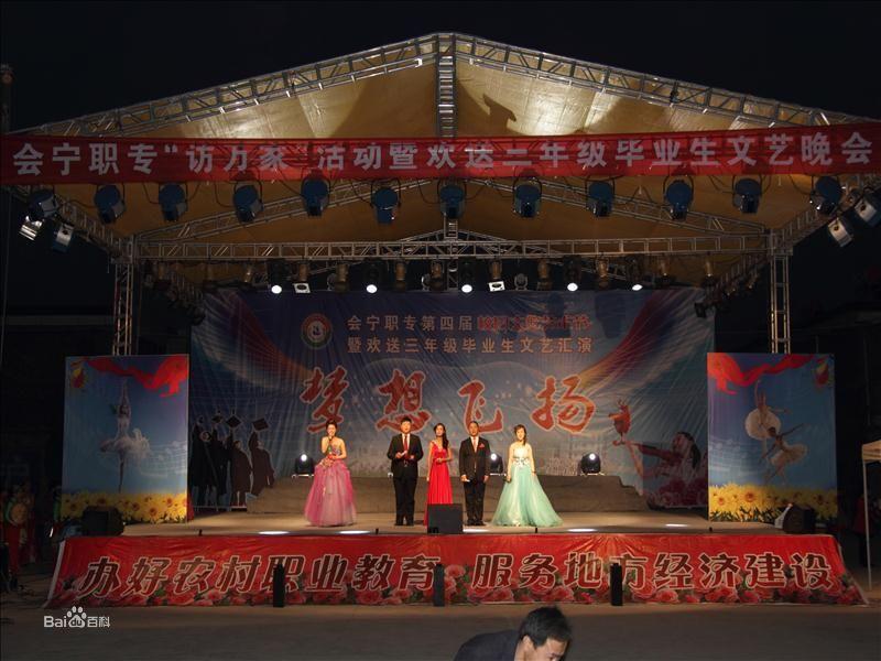 會寧職業中專會寧職業中專(郭城農業中學)是一所市級重點中專、省級重點職業高中。學校始建於1975年,1994年被省教育廳批辦為職業中專,1995年通過職業中學省A級評估驗收。學校地處會寧縣北部黃灌區,占地面積130多畝,建築面積28750平方米。校園綠樹成蔭,鳥語花香,環境幽雅。建有教學樓、綜合實驗樓、學生公寓樓、學生食堂、體育綜合樓等滿足學生的學習和生活需求。同時配備有信息中心、語音室、微機室、多媒體電教室和理化、生農以及音樂、形體練功等實驗操作室,保證實驗實習和豐富學生的文化生活。教學設施齊全,師資力量雄厚,教學態度嚴謹,管理規範。學校曾多次受到各級黨政機關及上級主管部門的表彰獎勵,是一所集學歷教育、技能培訓、就業服務為一體的綜合性職業教育基地。