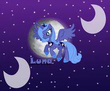 小馬利亞Equestria的第二統治者,Celestia的妹妹,同樣擁有角、翅膀和強大的魔法,膚色為靛藍色,(第一季為淡紫色不飄動的頭髮)第二季開始擁有了如星空般飄逸的長髮和暗紫色的膚色。頭戴黑色皇冠,可愛標記為銀白色彎月(包含黑色雲霧),體型比Celestia稍小但比一般小馬大。稱號為月之公主、夜之公主、夢境公主。負責將小馬國的月亮升起,同時也在夜晚的夢境中幫助有困難的小馬解開心結。與姐姐一起統治並維護整個小馬國。曾經因為嫉妒姐姐受到小馬們崇拜,也有說法是為了揭開姐姐的光明的謊言和虛偽,(註:2000千年前與黑晶王戰鬥,開發出了第二人格,參考“水晶帝國的隕落”)顯示出真正的世界而分裂出第二人格成為Night Mare Moon(夢魘之月),最後被姐姐以Elements of harmony(和諧水晶)擊敗並囚禁在月球,一千年後,於Summer Sun Celebration(夏日慶典)時回歸,試圖再次使小馬國處於永夜之下。但是被六主角用和諧水晶淨化,將黑暗人格封存在體內,與姐姐和解後回到她的身旁,重新做回了二公主Luna。因在月球上待太久而缺乏現代社會的常識。會使用類似文言的方式嚴肅地說話。嗓門特別大,她稱之為"皇家口音",也因此常嚇到不知情的小馬們。其實Luna只是怕寂寞罷了,對於小馬鎮的居民都有點害怕且疏遠她令她感到相當難過。雖然已經不是夢魘之月了,但是小馬們還是非常懼怕Luna。不過誤會已由Twilight解開。在與小馬鎮的居民混熟之後表現出極具玩興的一面,之後更希望小馬鎮的居民直接稱呼她Luna。雖然戲分不多,但是Luna在非主角群之中卻有極高的人氣。註:Luna一詞源於希臘語,意思是月神。