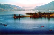 西昌邛海月亮灣青洲島礁石嶙峋,東方月亮灣綠樹環繞,大海湛藍,整個區域呈現出海 水清澈、沙潔銀白,空氣清新,環境十分優美。身處其境,慨嘆大自然之巧奪天工。項目總占地733公頃。