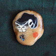 希姆博爾斯卡有一首詩《和石頭交談》,寫的是凝眸於一塊石頭時,突發奇想,認為石頭應該有一個門,會答應人的請求並讓人進去參觀,而李小洛正是以循循善誘之筆撬開了那些石頭的嘴巴,讓石頭說話了!我觀其石畫,在會心微笑和驚嘆之餘,還有一個十分有趣的發現:她畫在石頭上的女孩、貓、民居、甚至小轎車,其容貌、其形態、其神情、其氣質,全都與李小洛本人十分相像!聽說她近來在古城西安鐘樓上辦了石畫展,成立了工作室,也許哪天我會挎一個竹籃子到她那裡去向她討要石頭,像裝雞蛋一樣把籃子裝滿了再回來,同時提醒她:請注意,不要把漢江里的石頭統統畫完!