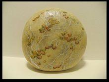 沒錯,最近一兩年來,她又嚇人一跳,似乎要將自己名字前面那個原本不太清晰的“畫家”的定語著意強調一下,要把這個定語的筆畫加黑加粗,她竟然把畫從宣紙上一直畫到了石頭上 ,還是漢江里的石頭 !她的一塊塊漢江石畫爛漫奇麗,似有楚辭之韻,陝南之地楚文化的氤氳在不知不覺之中已經滲透進她的生命肌理。她對那些石頭因勢造形,借紋造意,把那些死的石頭全都畫活了,讓那些碳酸鈣獲得了生命,獲得了浪漫和自由,那些石畫裡有童心未泯的好奇與莽撞,有赤裸裸的單純和一往無前的熱烈。