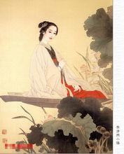 李清照像 李清照前期的詞比較真實地反映了她的閨中生活和思想感情,題材集中於寫自然風光和離別相思。如《如夢令》二首,活潑秀麗,語新意雋。《鳳凰台上憶吹簫》、《一剪梅》、《醉花陰》等詞,通過描繪孤獨的生活和抒發相思之情,表達了對丈夫的深厚感情,宛轉曲折,清俊疏朗。《蝶戀花·晚止昌樂館寄姊妹》寫對女伴們的留戀,感情也極其真摯。她的詞雖多是描寫寂寞的生活,抒發憂鬱的感情,但從中往往可以看到她對大自然的熱愛,也坦率地表露出她對美好愛情生活的追求。這齣自一個女作家之手,比起“花間派”代言體的閨怨詞來要有價值得多。