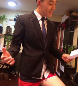 2015年8月10日,央視帥氣男主播李澤鵬在微博上曝光一組自己錄新聞的照片,他上身穿著西裝下身配紅褲衩,看來央視的新聞也是越來越親民了,而且這男主播還是個大帥哥。 李澤鵬還在微博上打趣道:“誰能給我穿條褲子?”