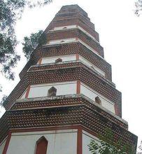 東塔自然風景圖片東塔為八角形樓閣式磚塔,底徑12米,高約50米。塔身每層疊澀稜角重檐,檐頂平座一周。東北和西北面開圭角形門,其餘各面設圭角形假壺門。頂置銅葫 蘆,塔內木樓板和木板樓梯登頂。有“東塔回瀾”之稱。