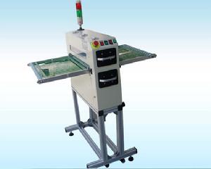 板面清潔機又名靜電除塵機、是專門針對各類板材雙面贓物、灰塵、靜電清潔之作用的機器、改機器由靜電消除器、矽膠除塵輪 、高粘集塵紙卷組成,利用靜電消除器對各類板材表面靜電進行去除,使其表面贓物及塵埃不具吸附性,再由矽膠除塵輪對其表面進行除塵、由高粘集塵紙卷將矽膠除塵輪上贓物轉移,使其保證潔淨避免再次污染。