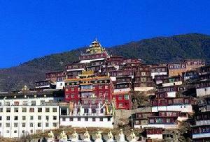 果洛白玉寺始建於1857年,占地面積千餘畝,寺院規模宏大,建築風格獨特。主要建築有經堂、佛殿、靈塔、大型轉經房等。其中大經堂可容納兩千多僧人同時打坐誦經;小經堂專用於講經,靜閉修煉、辯經、歷算、醫學等。