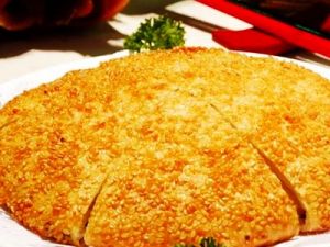 柳林芝麻餅黃河柳林芝麻餅以其香酥的特色而譽滿呂梁,成為人們訪親問友的必備佳品,選料講究,工序複雜,十分講究色、香、味、形。因其餅面遍撒芝麻,故而得名。