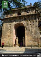 千佛岩千佛岩位於舍利塔後邊的山岩中,還有一組南朝時期開鑿的石窟,內鑿佛像500餘尊,稱千佛崖。其中最大的佛像是無量壽佛,高達10米,左右是觀音、大勢至菩薩立像,組成西方三聖。周圍的岩壁上迫布著佛憲和佛像,在最後一個石窟中,出現了一尊手執鐵錘與鐵錐的石工雕像,是佛像的開鑿者把自己的形象也鑿入佛龕。乾佛崖的佛像桔美壯觀,反映了古代勞動人民的智慧和力量。