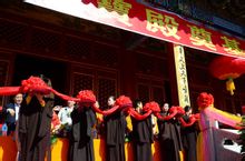 極樂寺為大雄寶殿落成致辭儀式結束後,各級領導、高僧大德、各界人士為中國最大全木結構大雄寶殿的落成剪彩