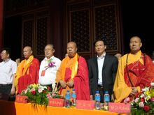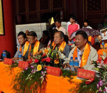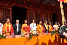 極樂寺左起:華嚴寺住持上妙下真大和尚;市委常委、副市長操學誠;五台山碧山寺竹林寺方丈上妙下江大和尚;市委常委、統戰部長姚生平;南京棲霞古寺方丈上隆下相大和尚;山西省委統戰部副部長、省宗教局(省民委)局長(主任)邊根棠;北京譚拓寺方丈上常下道大和尚;中共廣靈縣委書記、政府縣長郭占寶;極樂寺住持上昌下義大和尚。